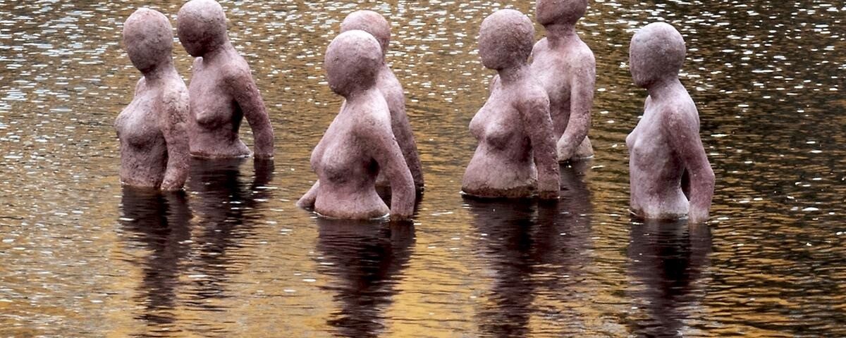 Helena Ekenger och Agneta Segerfelt, Evas sju döttrar, Örebros Open Art 2024 (efter berättelse om sju kvinnor som vandrade från Afrika via Arabiska halvön till Europa för 60 000 år sedan)