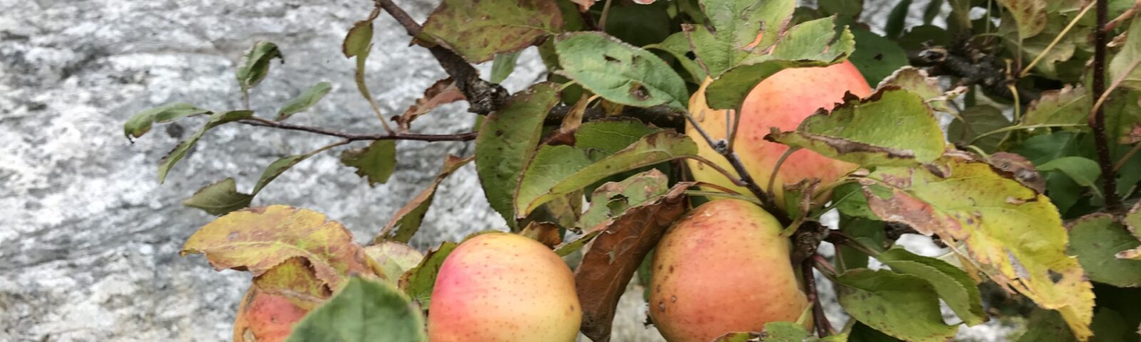 Nu i höst har vi haft en enastående äppleskörd härute i Göteborgs södra skärgård. Träden har dignat av frukt, utanför flera hus står korgar med äpplen som gåvor till människor. Vi har kokat äpplemos som kan användas till frukostflingorna. Äpplebitar i mat är bara så gott.